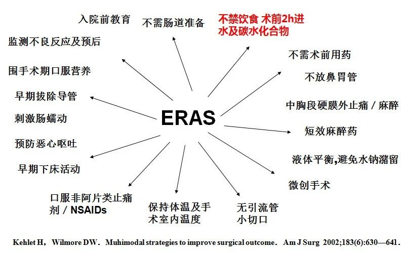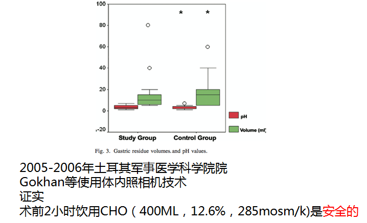 加速康復(fù)外科其中一項關(guān)于手術(shù)前的準(zhǔn)備中指出:術(shù)前2小時可以進(jìn)水及碳水化合物,這不影響手術(shù)的風(fēng)險,因為有實驗數(shù)據(jù)證明,水及12.5%的碳水化合物清液可以在2小時以內(nèi)在胃中排空的。